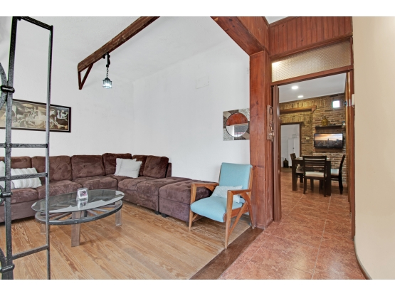 Living comedor amplio con chimenea, integrado a la cocina, generando un espacio cálido y perfecto para compartir